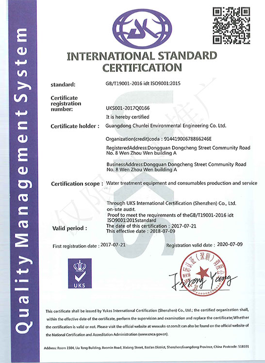 環(huán)境管理體系認證證書-中文