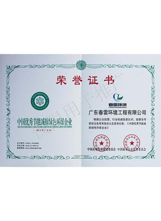 榮譽證書-中國優(yōu)秀節(jié)能減排綠色環(huán)保企業(yè)